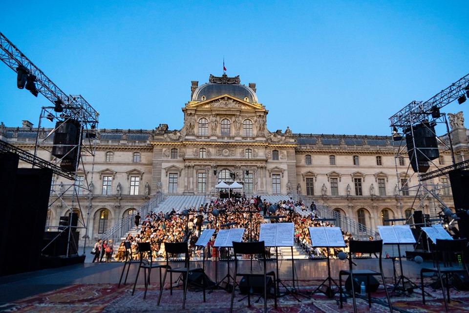 🎼 Sur les partitions de Don Giovanni et du Requiem de Mozart, le 12 juillet nous avons inauguré la première soirée du Festival Paris l’été ☀️ au parvis de la Pyramide du Louvre.
